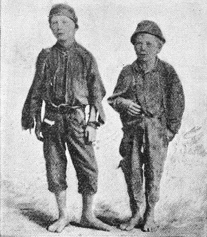 Whence this army of homeless boys? is a question often asked. The answer is supplied by the procession of mothers that go out and in at Police Headquarters the year round, inquiring for missing boys, often not until they have been gone for weeks and months, and then sometimes rather as a matter of decent form than from any real interest in the lad’s fate. The stereotyped promise of the clerks who fail to find his name on the books among the arrests, that he “will come back when he gets hungry,” does not always come true. More likely he went away because he was hungry. Some are orphans, actually or in effect, thrown upon the world when their parents were “sent up” to the island or to Sing Sing, and somehow overlooked by the “Society,” which thenceforth became the enemy to be shunned until growth and dirt and the hardships of the street, that make old early, offer some hope of successfully floating the lie that they are “sixteen.” A drunken father explains the matter in other cases, as in that of John and Willie, aged ten and eight, picked up by the police. They “didn’t live nowhere,” never went to school, could neither read nor write. Their twelve-year-old sister kept house for the father, who turned the boys out to beg, or steal, or starve. Grinding poverty and hard work beyond the years of the lad; blows and curses for breakfast, dinner, and supper; all these are recruiting agents for the homeless army. Sickness in the house, too many mouths to feed:
