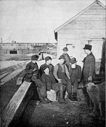 Rows of old women, some smoking stumpy, black clay-pipes, others knitting or idling, all grumbling, sit or stand under the trees that hedge in the almshouse, or limp about in the sunshine, leaning on crutches or bean-pole staffs. They are a “growler-gang” of another sort than may be seen in session on the rocks of the opposite shore at that very moment. They grumble and growl from sunrise to sunset, at the weather, the breakfast, the dinner, the supper; at pork and beans as at corned beef and cabbage; at their Thanksgiving dinner as at the half rations of the sick ward; at the past that had no joy, at the present whose comfort they deny, and at the future without promise. The crusty old men in the next building are not a circumstance to them. The warden, who was in charge of the almshouse for many years, had become so snappish and profane by constant association with a thousand cross old women that I approached him with some misgivings, to request his permission to “take” a group of a hundred or so who were within shot of my camera. He misunderstood me.