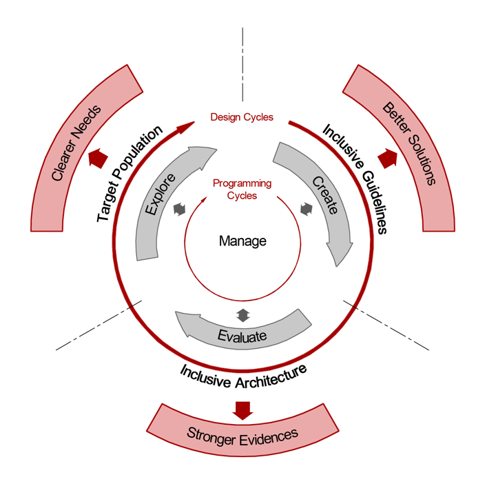 The methodology basis of this study is inclusive architectural design model(Zhang, Zou, & Liu, 2018) (Fig.1) which is updated model of original inclusive design model(Keates, 2005). In this model, the main steps are put forward based on environmental behavior science, including environmental analysis and assessment, behavioral analysis of target population, and strategy generation for problem solving, which is finally realized through architectural programming and design.