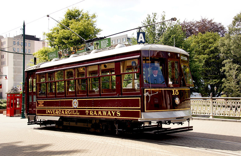 Trams in Christchurch by Bernard Spragg via Flickr. This work is in the public domain (CC0).