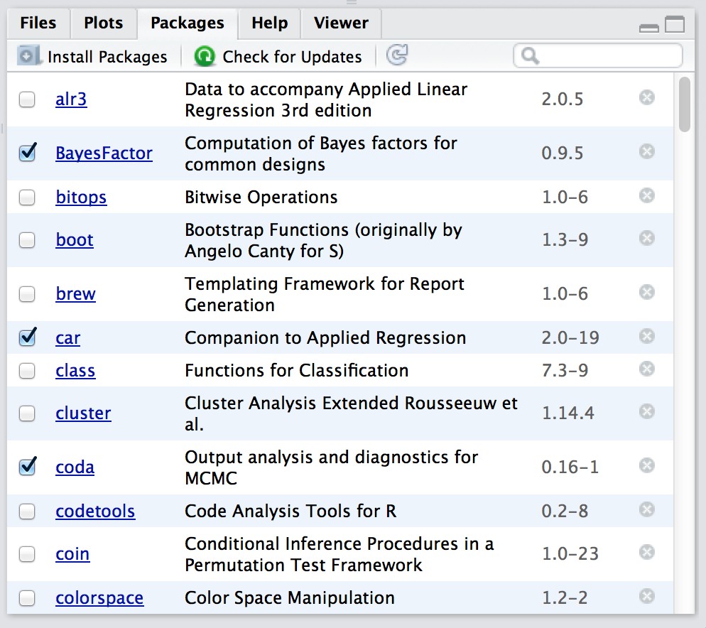 to be able to do more than ANOVA, more than t-tests, regressions and histograms. You need to be able to think properly about data. You need to be able to learn the more advanced statistical models that I talked about in the last section, and to understand the theory upon which they are based. And you need to have access to software that will let you use those advanced tools. And this is where – in my opinion at least – all that extra time I’ve spent on the fundamentals pays off. If you understand the graphics system in R, then you can draw the plots that you want, not just the canned plots that someone else has built into R for you. If you understand probability theory, you’ll find it much easier to switch from frequentist analyses to Bayesian ones. If you understand the core mechanics of R, you’ll find it much easier to generalise from linear regressions using lm() to using generalised linear models with glm() or linear mixed effects models using lme() and lmer(). You’ll even find that a basic knowledge of R will go a long way towards teaching you how to use other statistical programming languages that are based on it. Bayesians frequently rely on tools like WinBUGS and JAGS, which have a number of similarities to R, and can in fact be called from within R. In fact, because R is the “lingua franca of statistics”, what you’ll find is that most ideas in the statistics literature has been implemented somewhere as a package that you can download from CRAN. The same cannot be said for PSPP, or even SPSS.