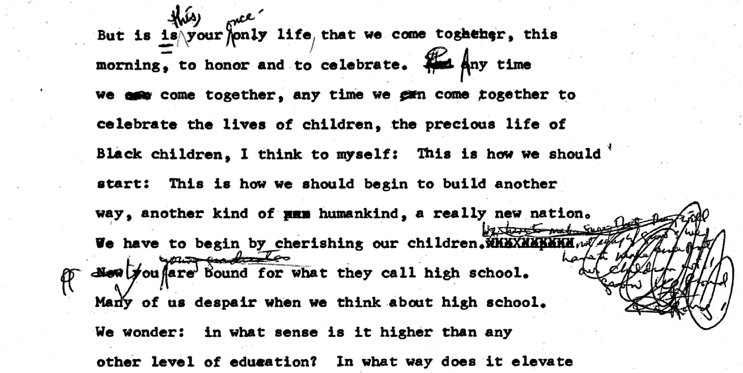 Jordan’s manuscript pages were typescript with occasional hand- written notes in pen on the margins, often with directives as to where things should be inserted and in what sequence. Here is an example: