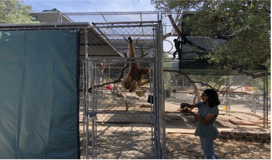 Figure 1: Gabi Skollar, the director of the Gibbon Conservation Center, feeding a northern white-cheeked gibbon named Astriks. Photo by author.