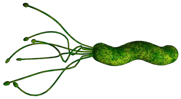 In the 1980s, Australian physicians Barry Marshall and Robin Warren proposed a radical hypothesis — that the cause of ulcers was bacteria that could survive in the acidic environment of the stomach and small intestine1. They met with significant opposition to their hypothesis but they persisted with their research. Their research led to an understanding that the spiral shape of the bacterium Helicobacter pylori (H. pylori) allows it to penetrate the stomach’s mucous lining, where it secretes an enzyme that generates substances to neutralize the stomach’s acidity. This weakens the stomach’s protective mucous, making the tissue more susceptible to the damaging effects of acid, leading to the development of sores and ulcers. H. pylori also prompt the stomach to produce even more acid, further damaging the stomach lining