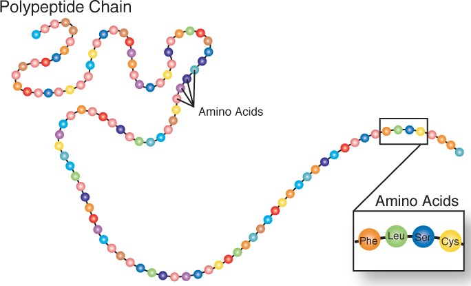 Molecules composed of chains of amino acid subunits are called proteins. Amino acids in turn, are simple subunits composed of carbon, oxygen, hydrogen, and nitrogen. The food sources of proteins are meats, dairy products, seafood, and a variety of different plant-based foods, most notably soy. The word protein comes from a Greek word meaning “of primary importance,” which is an apt description of these macronutrients. Proteins provide four kilocalories of energy per gram; however, providing energy is not protein’s most important function. Proteins provide structure to bones, muscles and skin, and play a role in conducting most of the chemical reactions that take place in the body. Scientists estimate that greater than one-hundred thousand different proteins exist within the human body.