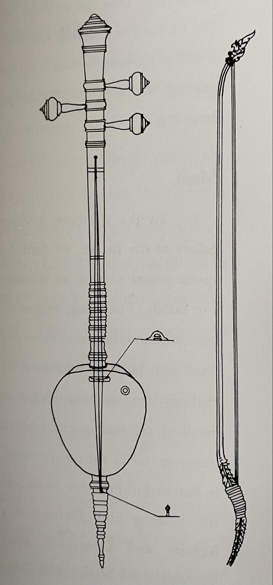 This buong suong features traditional Cambodian instruments, including the popular and versatile skor dai, a hand drum that is used in numerous musical genres and often heard at weddings; the tror khmer, a spike fiddle that is traditionally Cambodian, but nowadays is often replaced with the Chinese-derived tror ou (and therefore occupies a special place as a characteristically Cambodian instrument); and the khim hammered dulcimer. All of these instruments would commonly be found in wedding or spirit ceremony ensembles. After the Khmer Rouge, the composition of various musical ensembles has become looser, often determined by whichever musicians are available, who then play whichever instruments they know. This has meant that instruments often get swapped out based on their instrumental family: plucked-string instruments can be substituted for one another, bowed string instruments can be substituted for one another, drums can be substituted for one another. One such example in the “Heartstrings” ensemble was THUCH Savang swapping back and forth between the khim and the guitar.