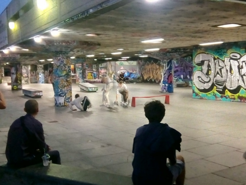 Figure 1: Contemporary skateboarders on the South Bank of the River Thames in London – the same skate spot that Colin Ward identified in the 1970s