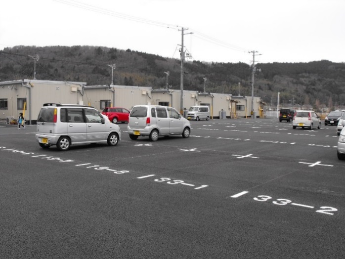 Photo 5: Massive areas of tarmac for car parking in temporary housing in the post disaster area of Japan.