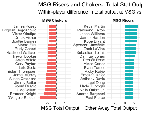 subtitle = "Within-player difference in total output at MSG vs other away games",