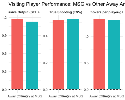 While perceptions of the “MSG Effect” are deeply ingrained in basketball culture, they are rooted in isolated moments, media framing, and retrospective storytelling rather than statistics. The present analysis seeks to address this gap by examining whether this “MSG Effect” is actually detectable in statistics, or if it is simply a product of our narrative-obsessed imagination.