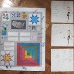 Figure 10. Planning notes, quilt front (log cabin block with quotes), and quilt back (remaining blocks)