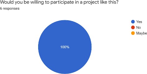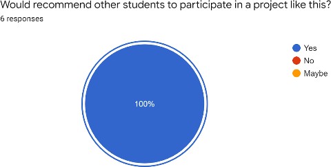 Figures 4 and 5 above show that participants are not only willing to participate in future projects like this, but also, they are willing to recommend other students to do it. Participants unanimously agreed 100% on their responses to both questions.