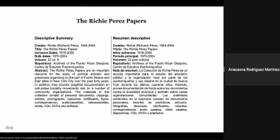Figura 3: Estudiante presentando los papeles de Richie Perez archivados en Centro-Center for Puerto Rican Studies