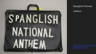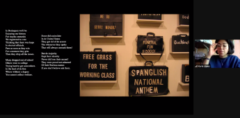Figura 4: Estudiante presentando los maletines de Pedro Pietri así como el poema Spanglish National Anthem