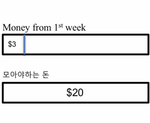Clause 2: He can save $3 per week. | 모세는 매주 3달러 모을 수 있다. | Money that Moises can save for 1 week: $3 Per week: 1주 Therefore, $3 can be saved each week. | |