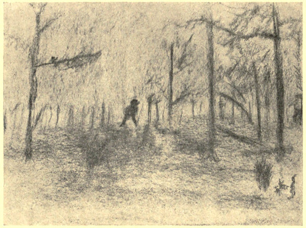 Finally he drew again from combined observation, memory, and imagination. He made again a free illustration, expressing his own imaginative thought, but controlled by detailed study of actual trees. The result was a scene representing a bit of forest; so far as it goes, it seems to me to have as much poetic feeling as the work of an adult, while at the same time its trees are, in their proportions possible ones, not mere symbols.