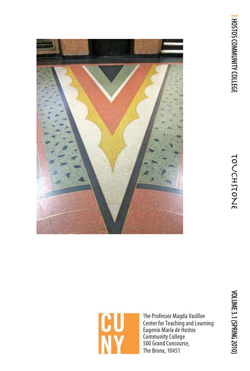 From English to the Library, from the Humanities to Behavioral and Social Sciences and from Business to Math, faculty members across Hostos have worked together to produce this third volume of Touchstone. We thank our contributors as well as our readers, who, we are assured, will be stimulated and inspired by reports from their colleagues.