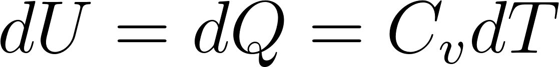 is called the specific heat. This depends on the process, on what parameters are kept constant during the supply of heat. Two useful specific heats for a gas are defined for constant volume and constant pressure. If heat is supplied keeping the volume constant, then the internal energy will increase. From the first law, we find, since