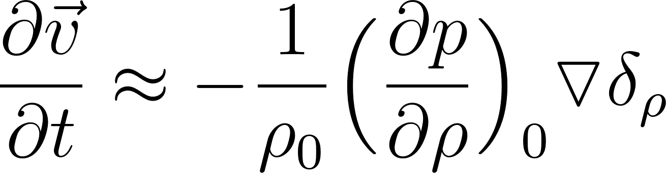 Equation (2.17) is the wave equation with the speed of propagation given by . This equation shows that density perturbations can travel as waves; these are the sound waves. It is easy to check that the wave equation has wave-like solutions of the form