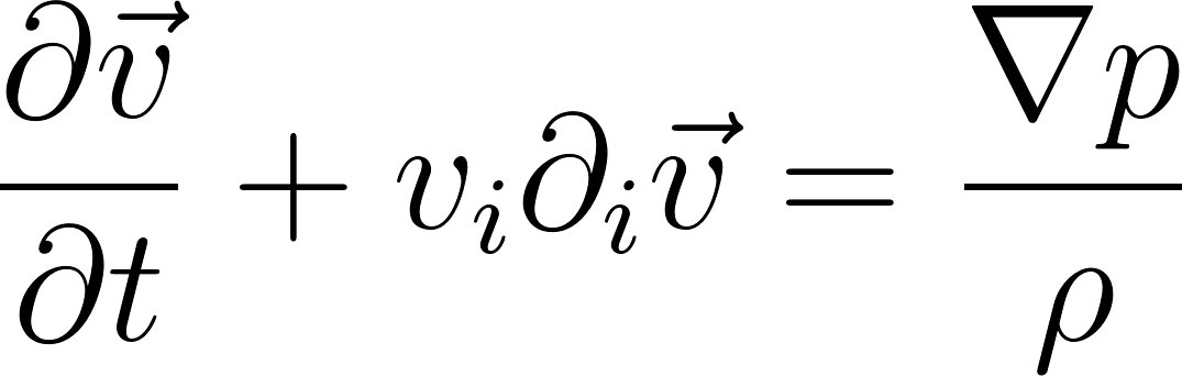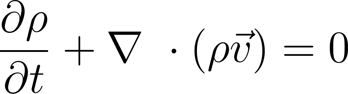 The first equation is the equation of continuity which expresses the conservation of particle number, or mass, if we multiply the equation by the mass of a molecule. The second term is the fluid equivalent of Newton’s second law. In the absence of external forces, we still can have force terms; in fact the gradient of the pressure, as seen from the equation, acts as a force term. This may also be re-expressed in terms of the density, since pressure and density are related by the equation of state.