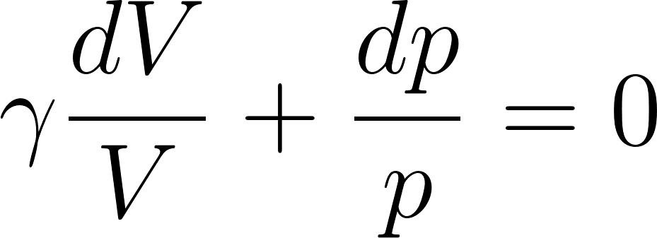 The thermodynamic variables involved in the change can be quite general; for example, we could consider magnetization and the magnetic field, surface tension and area, or pressure and volume. For a gas undergoing thermodynamic change, the relevant variables are pressure and volume. In this case, for an adiabatic process, since ,