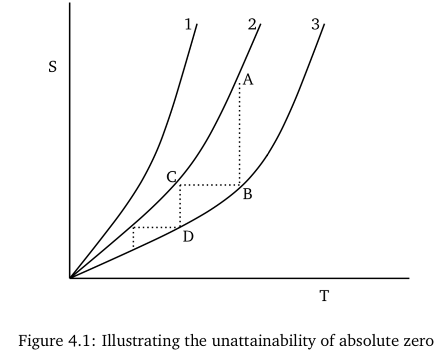For different starting points, the variation of entropy with temperature will be as shown in Fig. 4.1. A process which reduces the temperature can be viewed as an isothermal decrease of entropy from to
