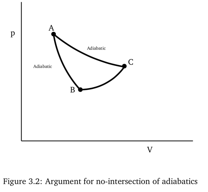 absorbed and converted entirely to work with no other change in the system. This contradicts the Kelvin statement of the second law. It follows that adiabatics cannot intersect.