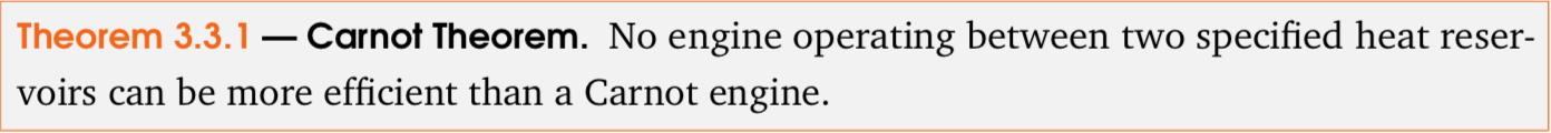 Once we take the second law as an axiom of thermodynamics, there are some important and immediate consequences. The first result is about the efficiency of the Carnot cycle, captured as the following theorem.