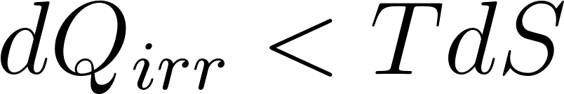 as we have already seen. There is a further refinement we can make by considering irreversible processes. There are many processes such as diffusion which are not reversible. For such a process, we cannot write . Nevertheless, since entropy is a function of the state of the system, we can still define entropy for each state. For an irreversible process, the heat transferred to a system is less than