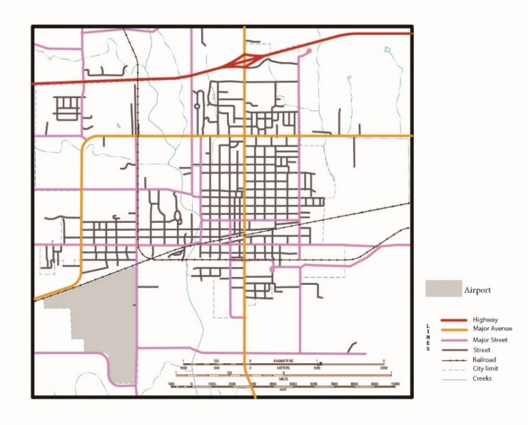 Figure 9. Transportation through road hierarchy and location of airport in Abilene, Kansas