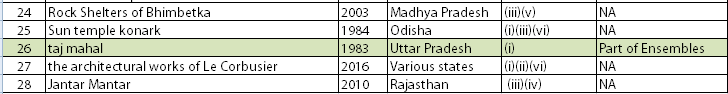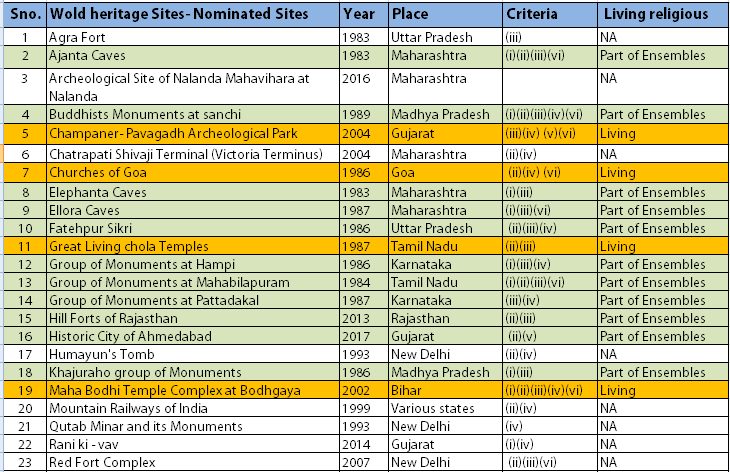 Table 1. List of Nominated World heritage sites showing the Living Religious sites in India
