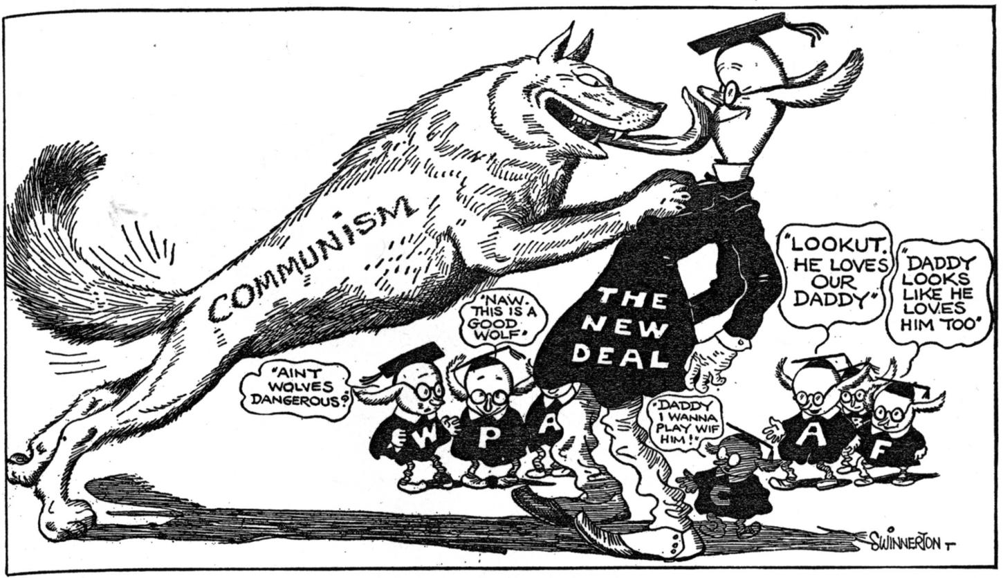 But if the New Deal failed to make capitalism work, its supporters nevertheless transformed the nation’s politics. The Roosevelt electoral coalition would dominate presidential politics until the 1970s. White supremacists from the South belonged to it, but so did progressive farmers from the upper Midwest, urban politicians whose machines had been reinvigorated by the federal relief funds they administered, middle-class liberals anxious for social reform, African Americans who saw the federal government as a new ally, and industrial unions that gave weight and influence to the Democratic Party’s left wing. Roosevelt often functioned as a power broker juggling those disparate interests. It was not always a pretty sight, but compared with the far more monolithic power that the pre-Depression Protestant elite had wielded, the Roosevelt coalition had far more legitimacy.