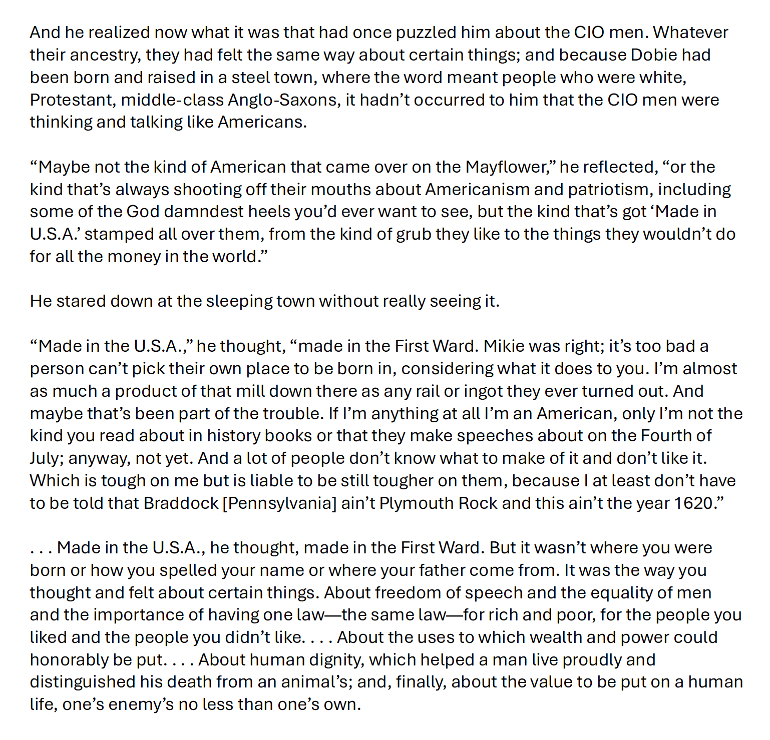 But during the 1930s, liberals, labor, and the left successfully captured the flag. A telling moment came in 1934 when Secretary of Labor Frances Perkins visited unorganized steelworkers in Homestead, Pennsylvania, to hear their grievances and explain New Deal labor policy. When union militants sought to make their voices heard, the mayor of the town, which was tightly controlled by U.S. Steel, abruptly cut short Perkins’s speech and ushered her out of the city hall. Out on the street, amid a crowd of angry steelworkers, she spotted an American flag flying over the local post office. In the lobby of that federal building, under the symbol of national unity, she resumed her speech, detailing, for the largely Catholic, immigrant audience, their rights under federal law.