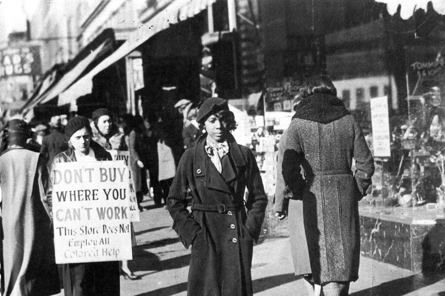 The women walking this picket line were asking customers to boycott one of the many white-owned stores that refused to hire Black employees in West Baltimore, Maryland. Similar demonstrations appeared in New York, Chicago, and other large cities in the early 1930s.