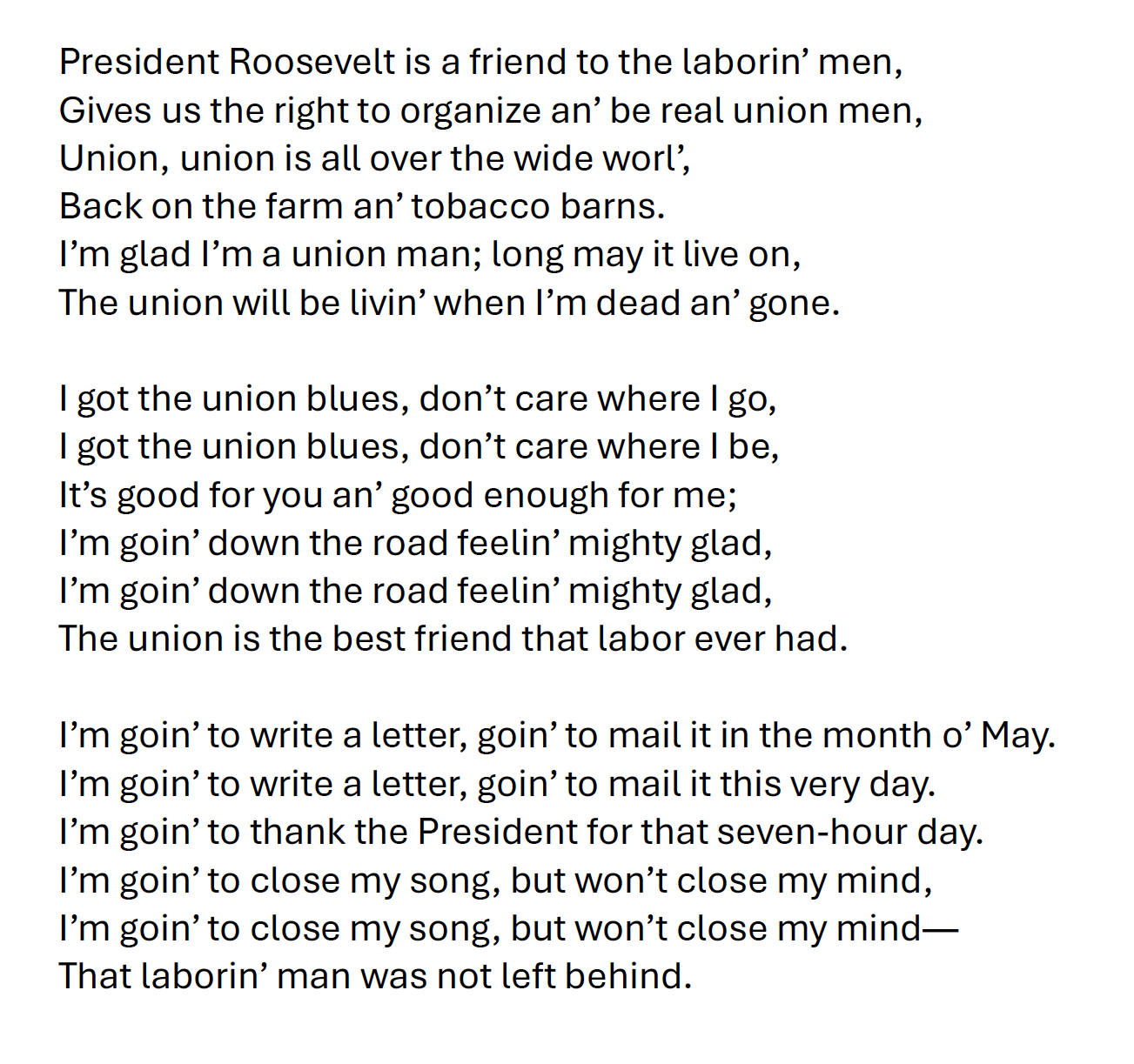 Soon the Depression era labor movement would deploy huge American flags and other patriotic symbols in all its struggles. In California’s San Joaquin Valley, Anglo, Mexican, Filipino, and African American field hands demanded an “American standard of living” and rejected the paltry wage increases offered by the antiunion Associated Farmers. To rally those on the picket lines, strikers sang, “Fight for Union recognition, Fight for better pay, Fight to better our condition, In the democratic way, Eighty cents won’t feed us, A dollar and a quarter would be fine, Show the farmers that they need us, JOIN THE PICKET LINE.”