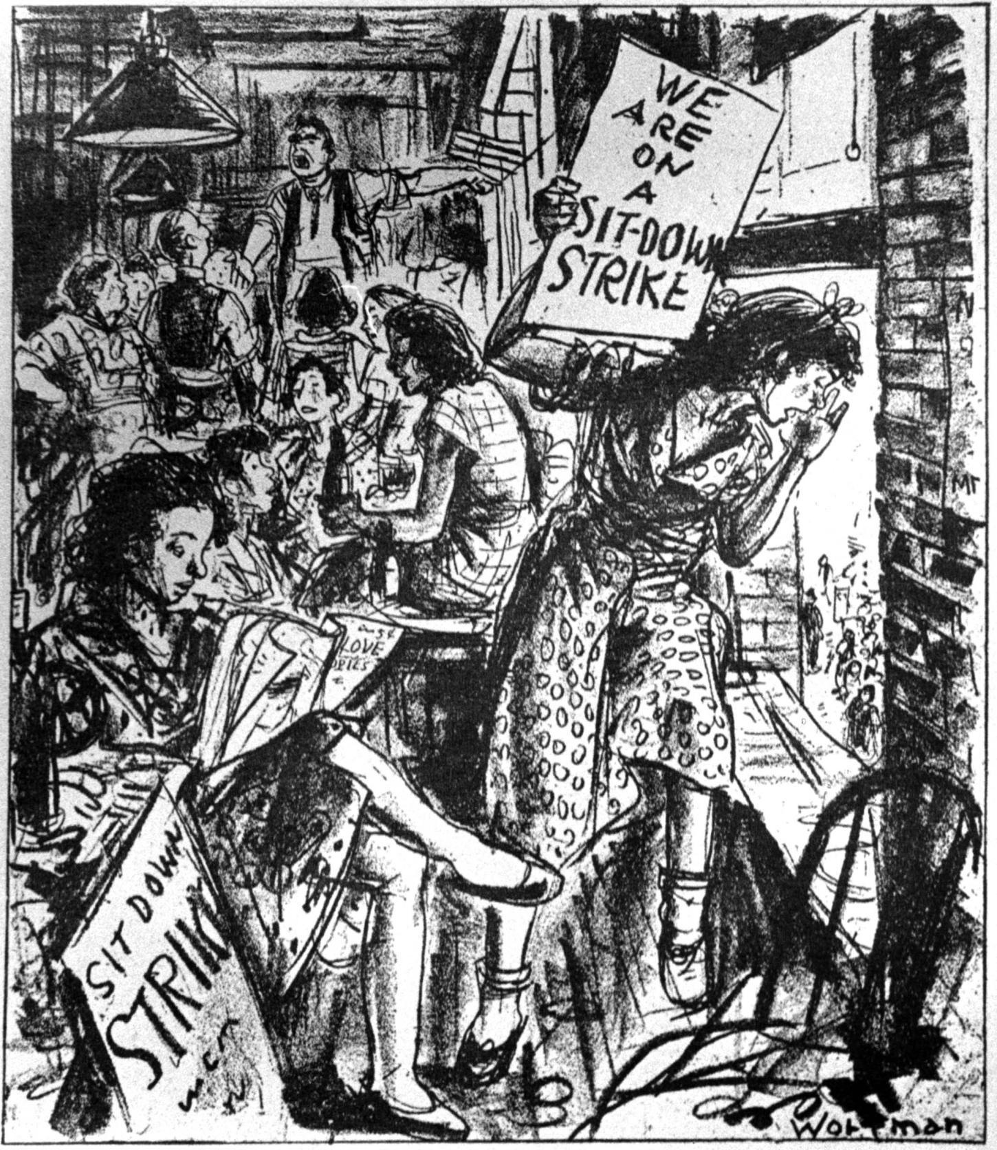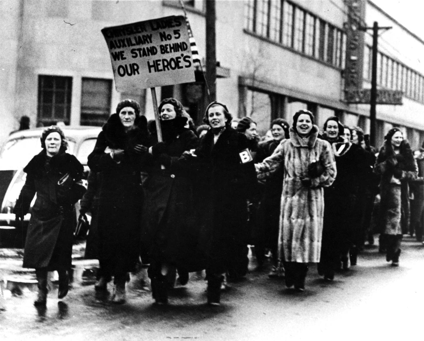 In these union struggles, women workers won their own kind of industrial citizenship, albeit one that was limited by the sexist assumptions of the period. The unions recruited almost a million women in the 1930s, especially in the garment trades, electrical products, clerical and sales work, canning, and tobacco processing. Women sit-down strikers occupied hotels, drugstores, restaurants, and auto parts factories. Women often played an essential role in linking a union’s shop activism to the larger community. Most unions organized women’s auxiliaries, whose very existence testified to a sense of family solidarity. During the 1934 Firestone strike in Akron, for example, the local newspaper reported, “Shoulder to shoulder with their men, the wives, daughters, and sisters of strikers marched through the business district to strike headquarters in a great victory parade.” But such dramatic linkages were far less important than the more subtle ways in which women made the unions present in their neighborhoods and communities. Labor-based tenant organizations, soup kitchens, food cooperatives, recreation halls, singing societies, and education programs drew both women workers and the wives and daughters of male unionists into a dense, supportive social network that strengthened the ties of solidarity inside the factory and out.