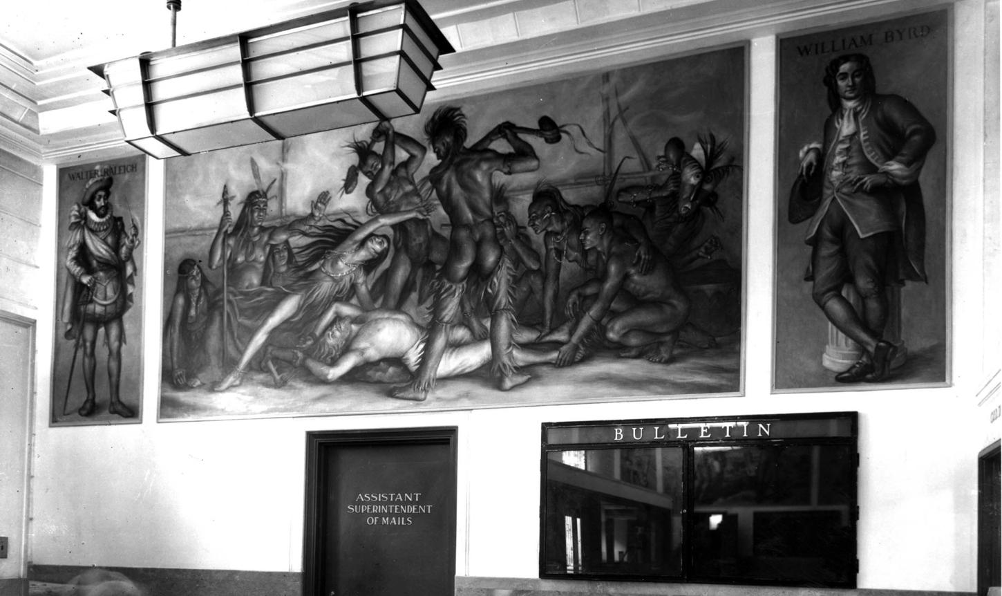New Deal public art embodied the hope of John Dewey, the nation’s foremost philosopher, that “our public buildings may become the outward and visible sign of the inward grace which is the democratic spirit.” Reflecting the leftist politics of many of the artists, the representational subject matter was often that of ordinary Americans, at work or in struggle, rendered in a heroic, larger-than-life style. Like other elements of New Deal culture, the murals and paintings were overtly masculinist. Women were portrayed as sturdy partners in the American pageant but were not presented as heroines in their own right.