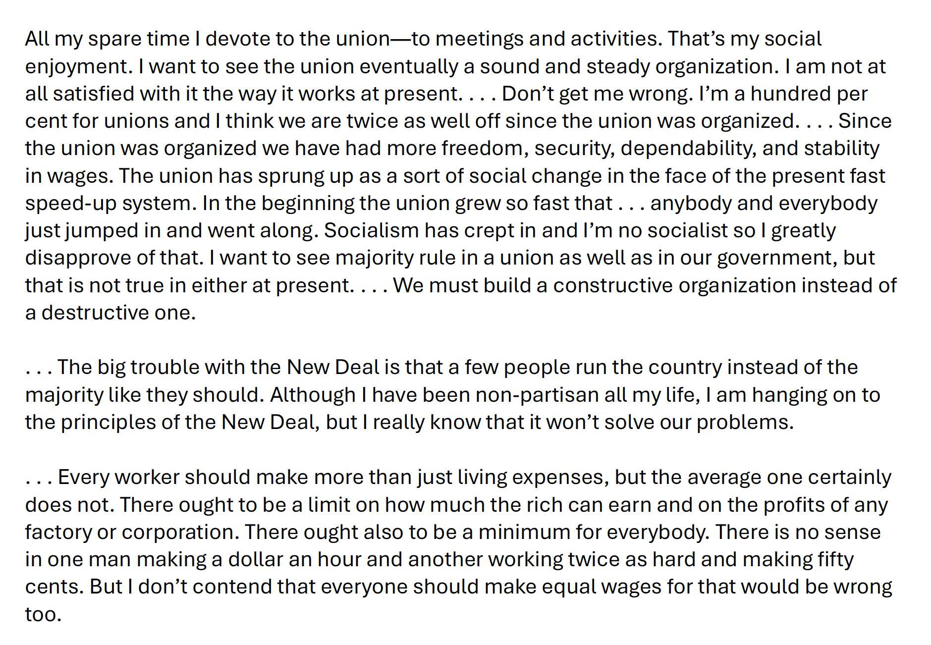 The CIO’s campaign to unionize the steel industry put its egalitarian claims to the test. Black-white conflict had helped to undermine the great steel strike of 1919. Now, the recruitment of Black organizers to the Steel Workers Organizing Committee helped to reassure skeptical African American steelworkers that the union would take their interests seriously. The union’s success brought an end to some of the most glaringly discriminatory practices in the steel industry. As the lowest-paid laborers won large raises, the enormous wage inequities between high- and low-skilled workers began to shrink. Meanwhile, the CIO’s culture of solidarity earned Black workers some real social dividends. “Well, you know, I’ll tell you what the CIO has done,” reported a Black worker in Chicago. “Before, everyone used to make remarks about, ‘that dirty Jew,’ ‘that stinkin’ Black bastard,’ ‘that low-life Bohunk,’ but you know I never hear that kind of stuff anymore. I don’t like to brag, but I’m one of the best-liked men in my department. If there is ever any trouble, the men usually come to me.”