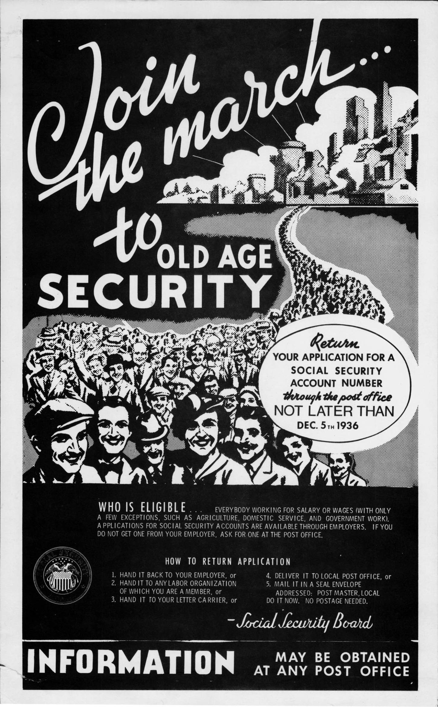 A 1936 poster instructed Americans about the procedures to enroll in the new Social Security program.
